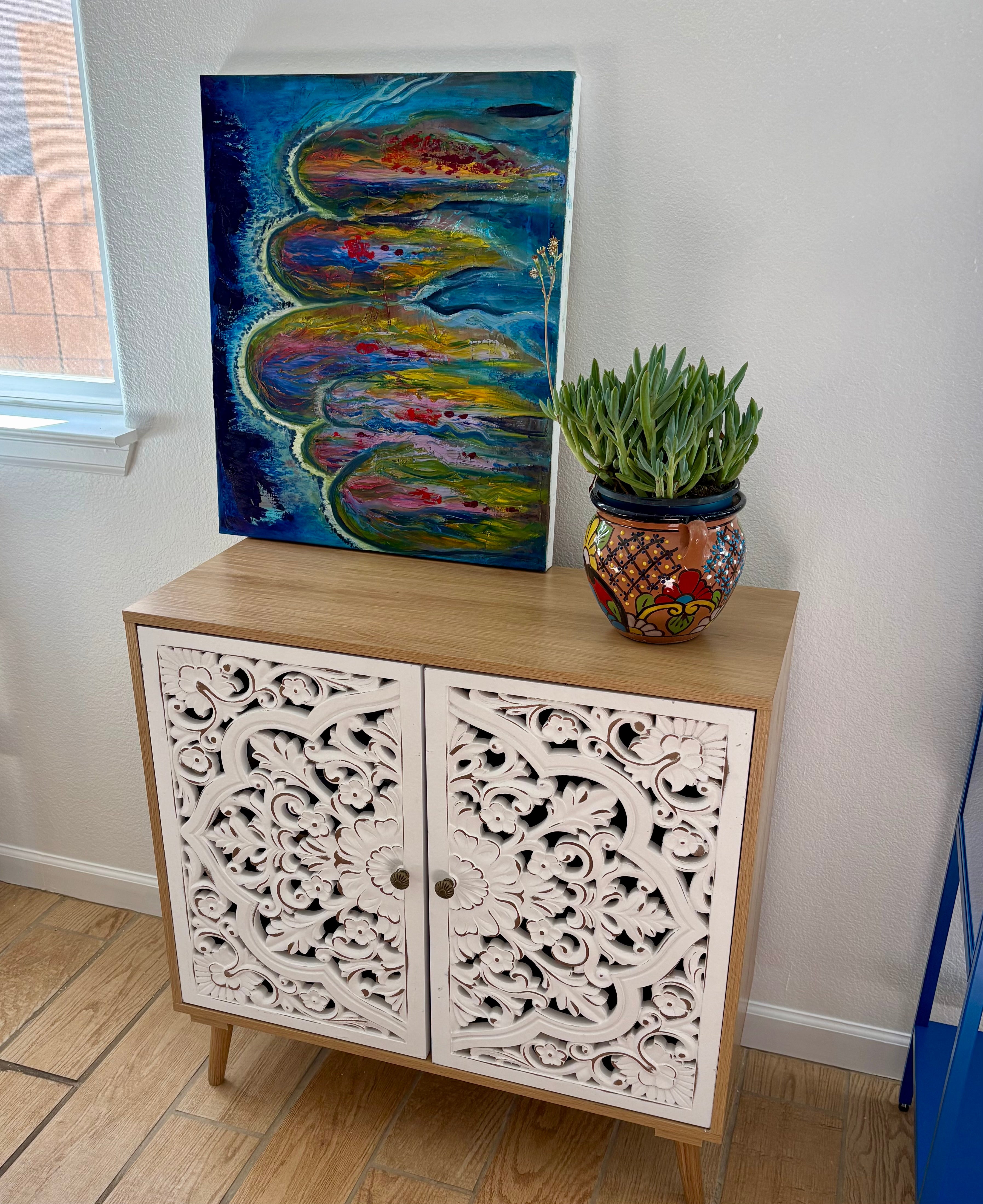 Bold, intuitive paintings with range: atmospheric abstracts, expressive creatures, surreal scenarios and playful symbolism.